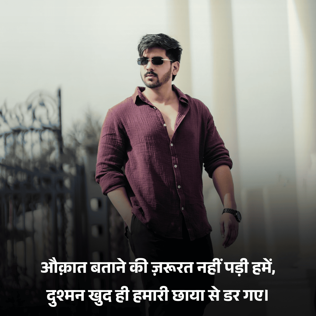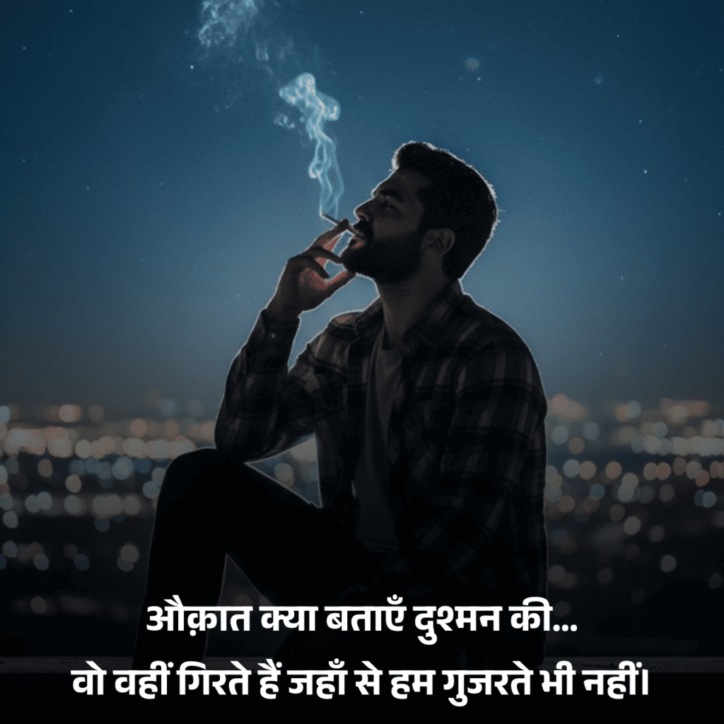 दुश्मन की औकात शायरी आजकल सोशल मीडिया और व्हाट्सएप स्टेटस में बहुत पॉपुलर है। यह शायरी सिर्फ जज्बातों को व्यक्त नहीं करती, बल्कि आपके आत्मविश्वास और ताकत को भी दिखाती है।