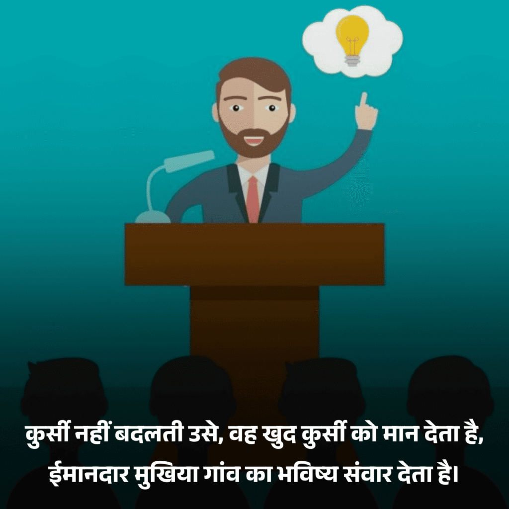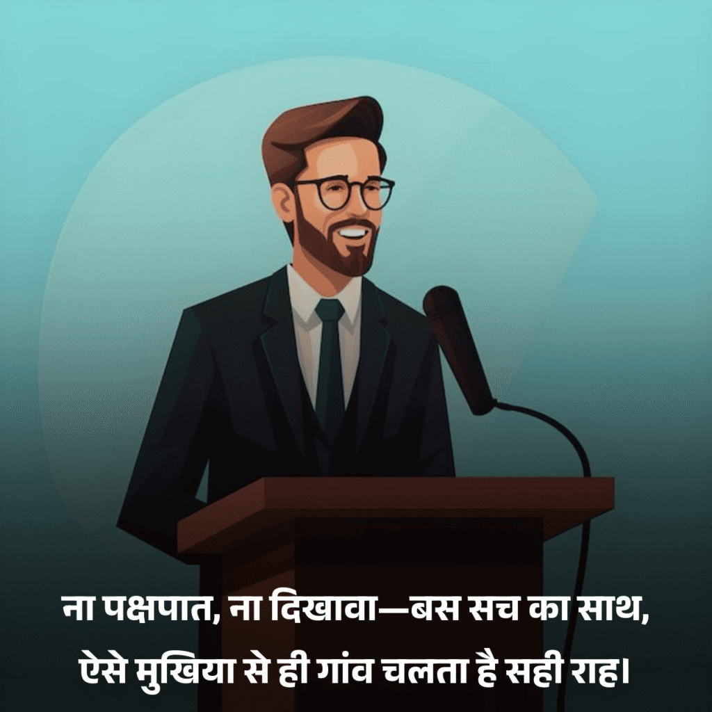 गांव की तरक्की हो या लोगों की उम्मीदें—हर जगह एक ईमानदार मुखिया का रोल सबसे महत्वपूर्ण होता है। वह सिर्फ एक पद नहीं, बल्कि भरोसे, सेवा और जिम्मेदारी का प्रतीक होता है। इसलिए जब बात होती है ईमानदार मुखिया के लिए शायरी की, तो दिल अपने आप उन नेताओं की ओर झुक जाता है जो बिना स्वार्थ, बिना डर और बिना पक्षपात के अपने गांव का भला सोचते हैं। ऐसी शायरी न सिर्फ उन्हें सम्मान देती है, बल्कि हर पाठक को ईमानदारी और कर्तव्य निभाने की प्रेरणा भी देती है।