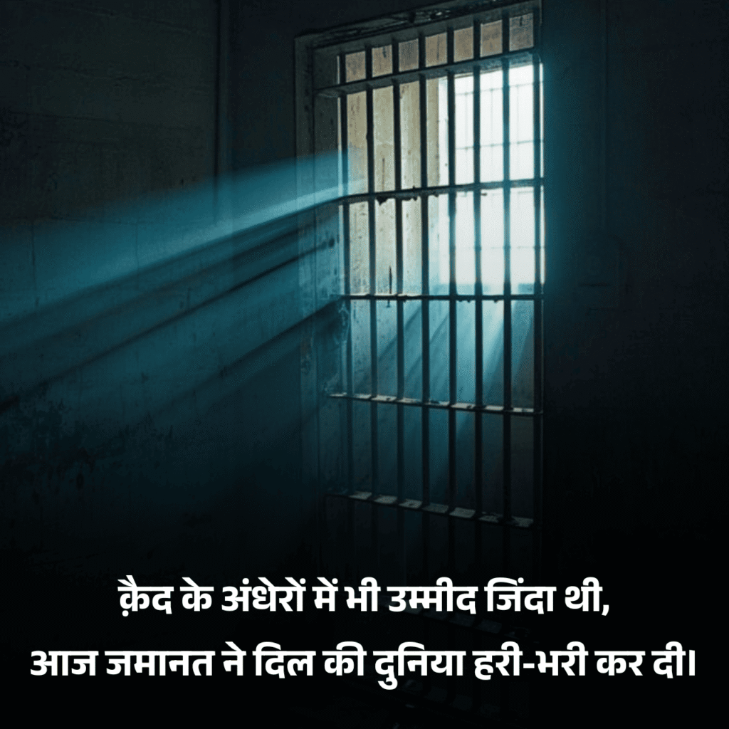 ज़िंदगी जब क़ैद जैसे लम्हों में उलझ जाती है, तो जमानत की खबर दिल में नई उम्मीद जगा देती है। जेल से जमानत होने पर शायरी ऐसे ही एहसासों को लफ़्ज़ों में पिरोने का एक खूबसूरत ज़रिया बन जाती है, जहाँ डर, राहत और आज़ादी सब एक साथ महसूस होते हैं।