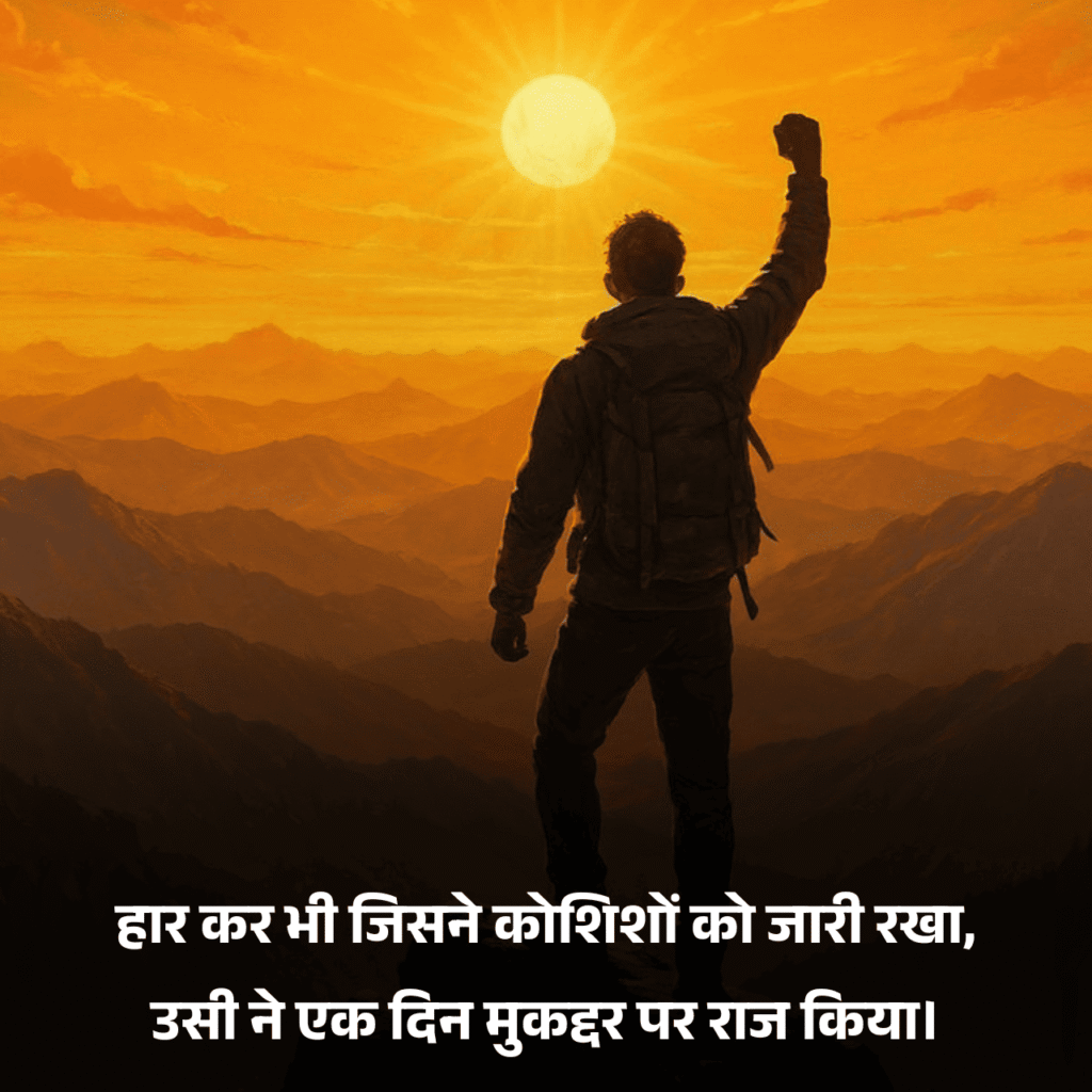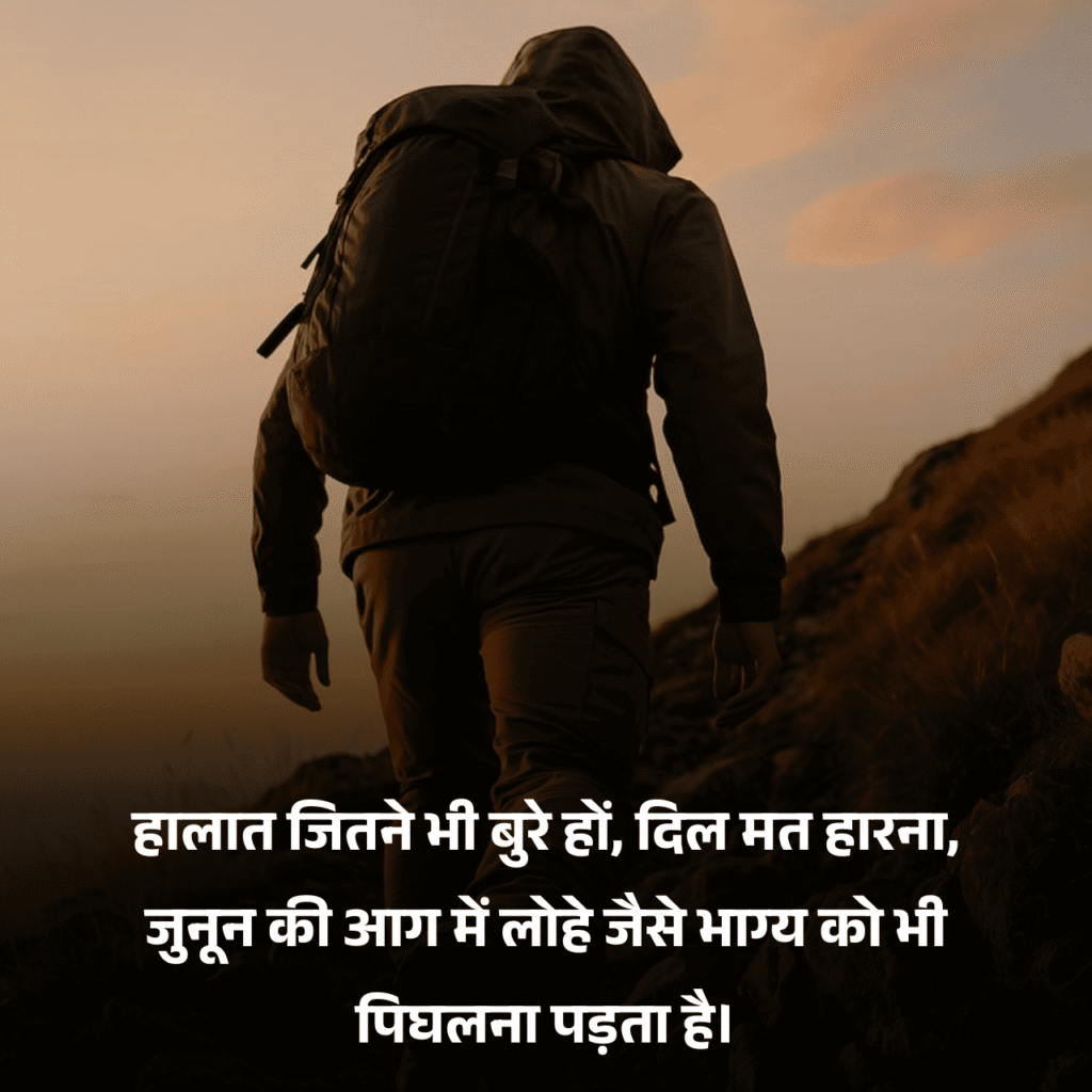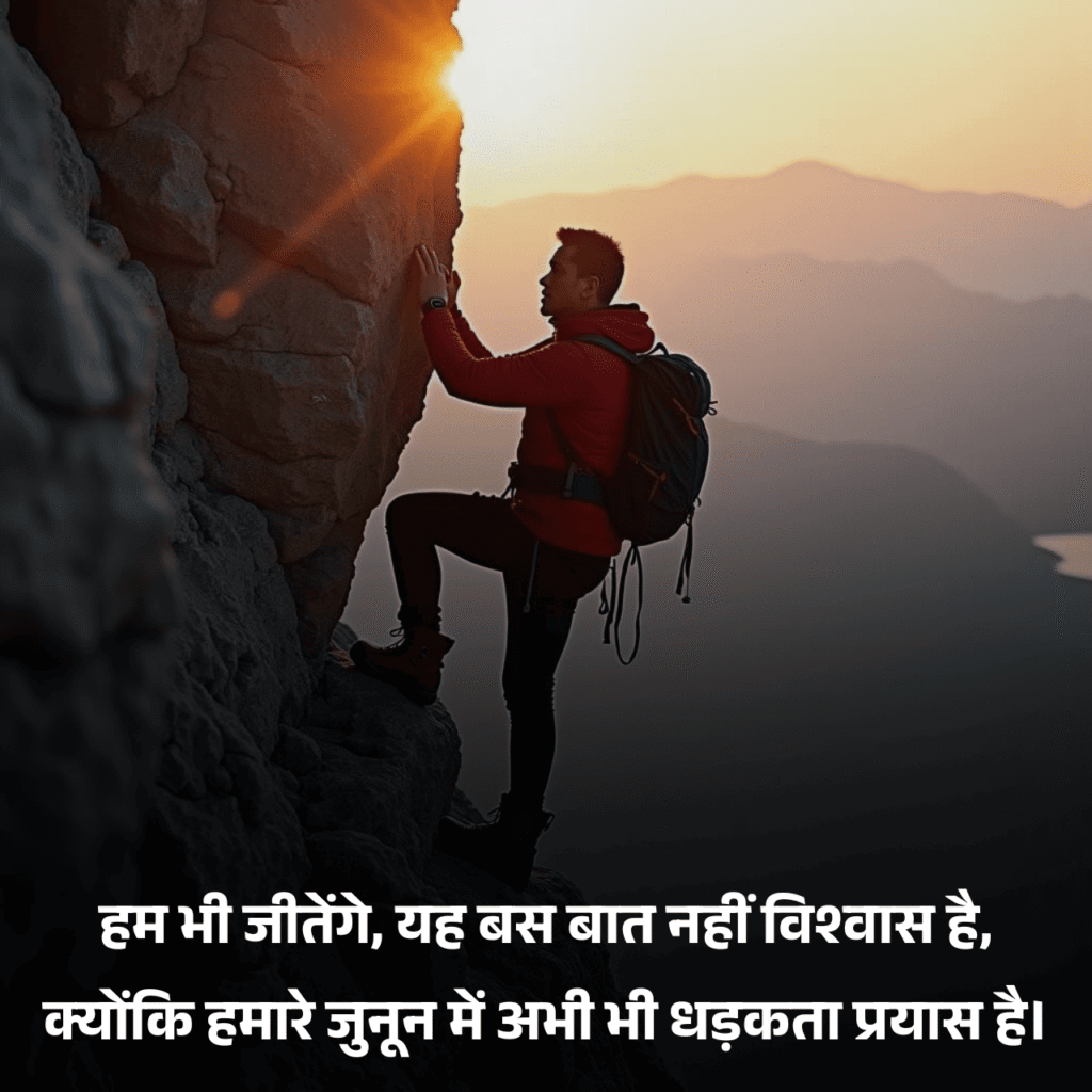 आज के समय में हर कोई अपने लक्ष्य को हासिल करना चाहता है, लेकिन रास्ते में आने वाली रुकावटें कई बार हिम्मत तोड़ देती हैं। ऐसे में जीत का जुनून शायरी मन में नई ऊर्जा जगाती है और याद दिलाती है कि जीत उन्हीं की होती है, जो आखिरी तक लड़ते रहते हैं। ये शायरी आपके अंदर छुपी ताकत को बाहर निकालती है और आपको अपने सपनों तक पहुंचने की हिम्मत देती है।