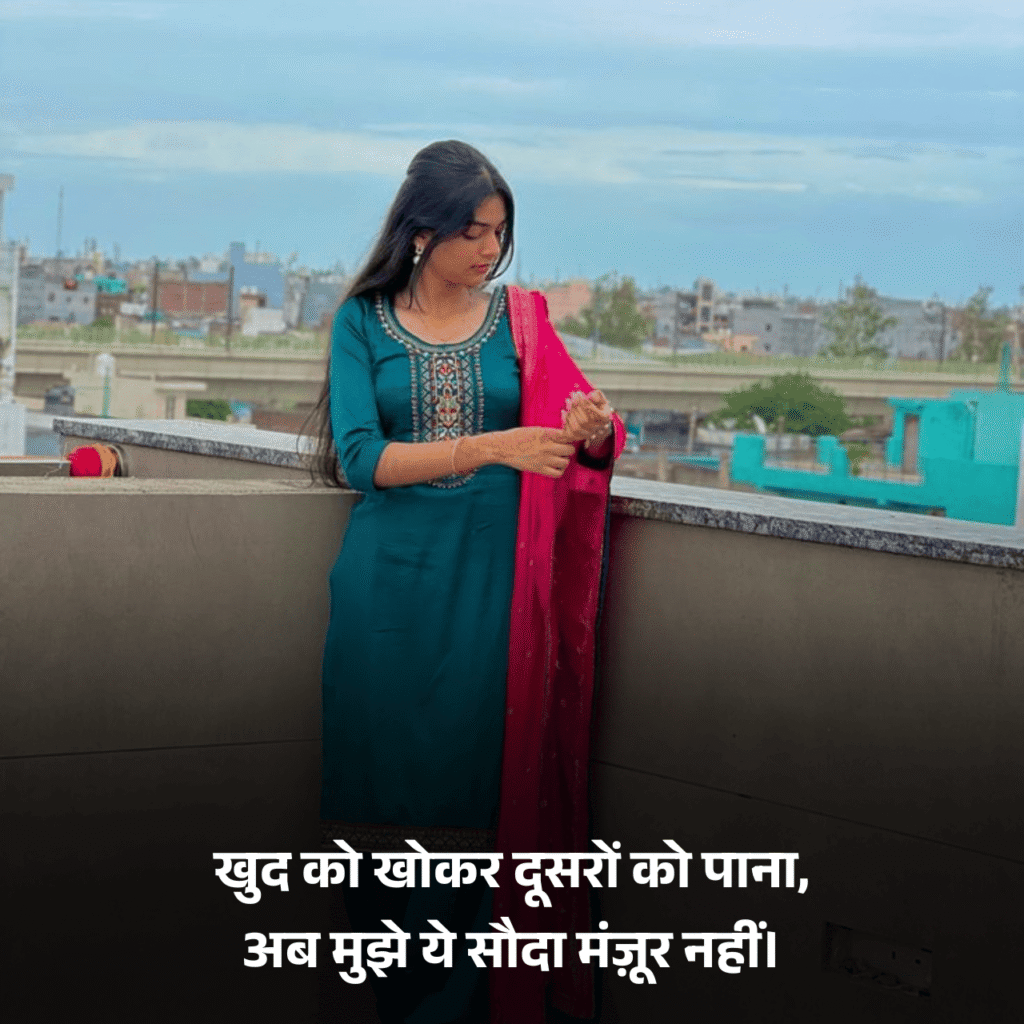 Self Love Shayari दिल को सुकून देती है और मन को मज़बूती। ये शायरी हमें सिखाती है कि अकेले होना कमजोरी नहीं, बल्कि खुद को समझने का मौका है। जब आप खुद के साथ खड़े होते हैं, खुद को स्वीकार करते हैं, तब ज़िंदगी अपने आप खूबसूरत लगने लगती है। Self Love Shayari in Hindi उन सभी लोगों के लिए है, जो खुद को दोबारा खोज रहे हैं और अपने दिल से दोस्ती करना चाहते हैं।